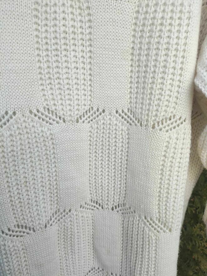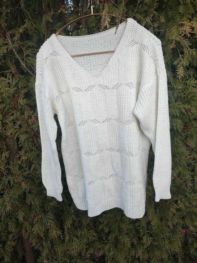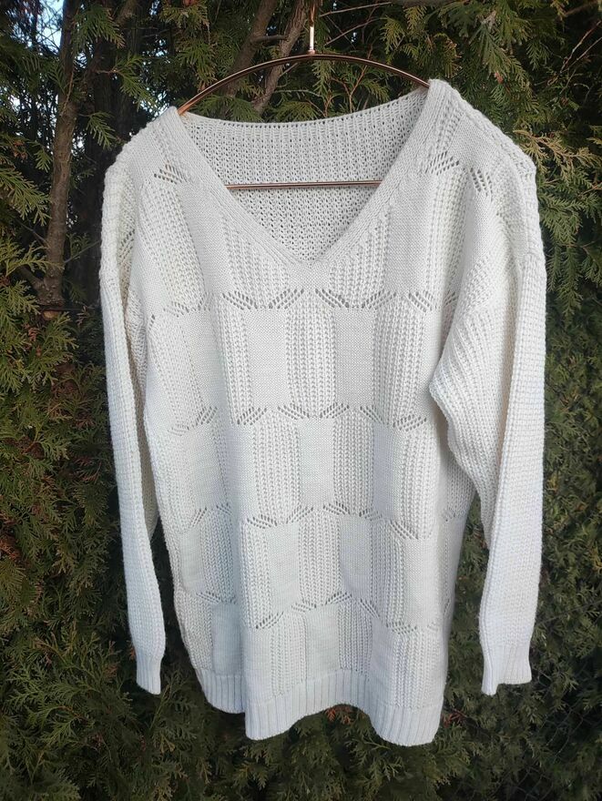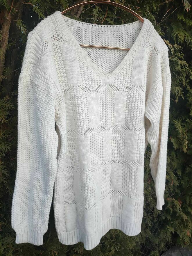 Sweter Biały wełniany ażurowy dla Kobiet damski z dekoltem.Sweter Nowy.