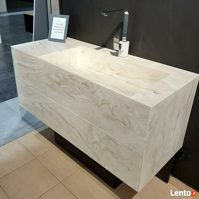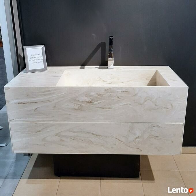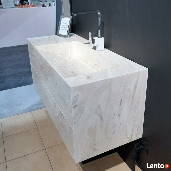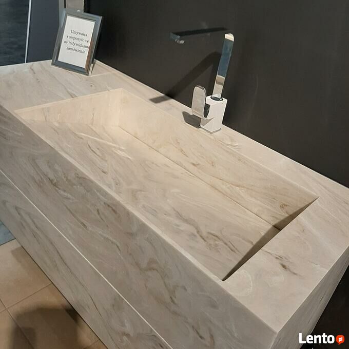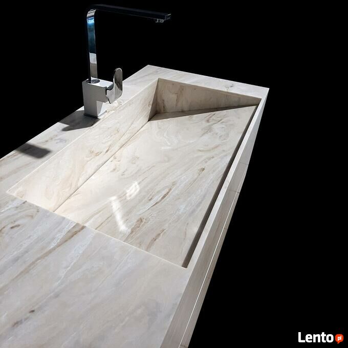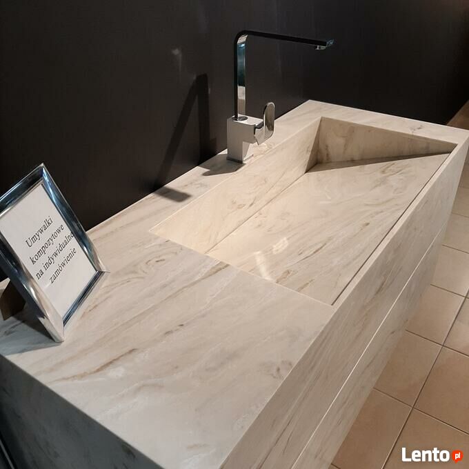 Istnieje możliwość wykonania umywalki (jak również blatu, mebla itp.) w dowolnym wymiarze, kolorze i kształcie.