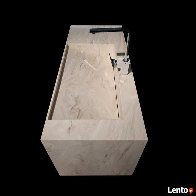 Produkt na zamówienie - termin realizacji do 6 tygodni od daty złożenia zamówienia.Szafka łazienkowa ze zintegrowaną umywalką z odpływem liniowym. Nowoczesny design, bezkonkurencyjna w kwestii funkcjonalności: wodoodporna, nieporowata, łatwa w utrzymaniu czystości, odporna na większość środków chemicznych a do tego unikalna i piękna!