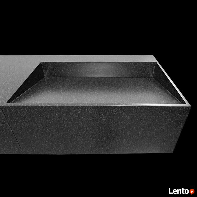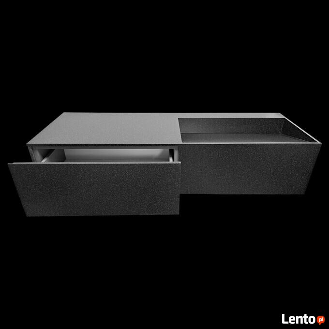 Produkt na zamówienie - termin realizacji do 6 tygodni od daty złożenia zamówienia.Szafka łazienkowa ze zintegrowaną umywalką z odpływem liniowym oraz szufladą. Z przodu i z prawej strony umywalki znajduje się ścianka 1,2cm. Z tyłu znajduje się 8,8cm blatu (istnieje możliwość wykonania otworu pod baterię). Natomiast z lewej strony znajduje się przestrzeń robocza. Nowoczesny design, bezkonkurencyjna w kwestii funkcjonalności: wodoodporna, nieporowata, łatwa w utrzymaniu czystości, odporna na większość środków chemicznych a do tego unikalna i piękna!