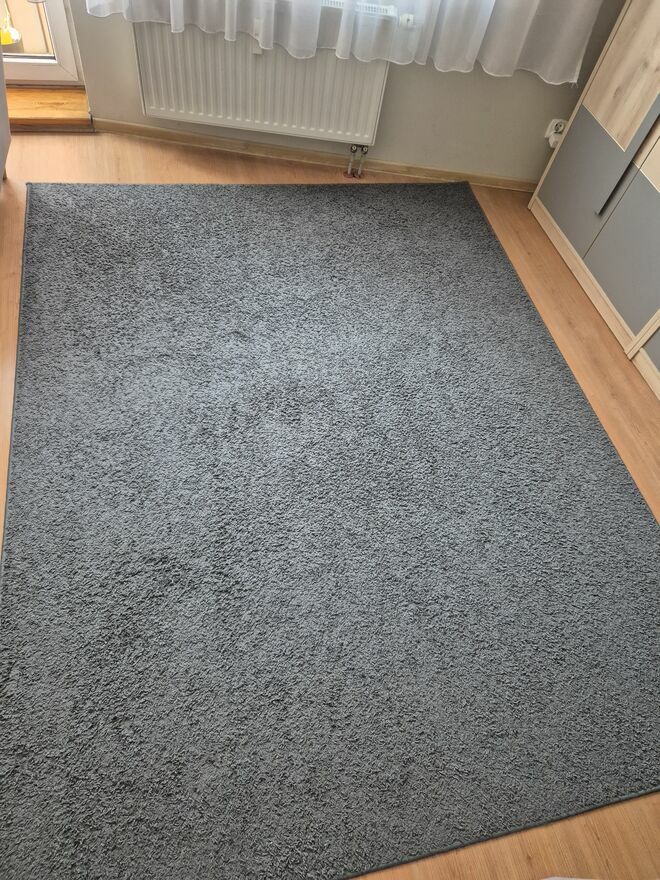 Sprzedan dywan w kolorze szarym (200 x 253 cm). Dywan jest używany, ale w dobrym stanie.Michał