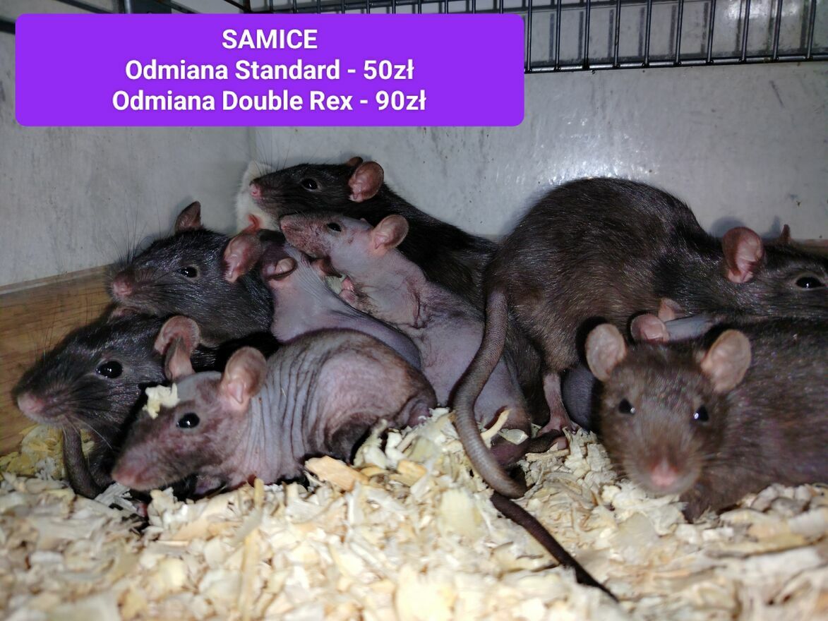 Na sprzedaż są młode szczurki w dwóch odmianach: Standard oraz w wyjątkowej odmianie Double Rex (charakterystyczne kręcone futerko lub okresowe wyłysienia).*Są od niespokrewnionych rodziców!