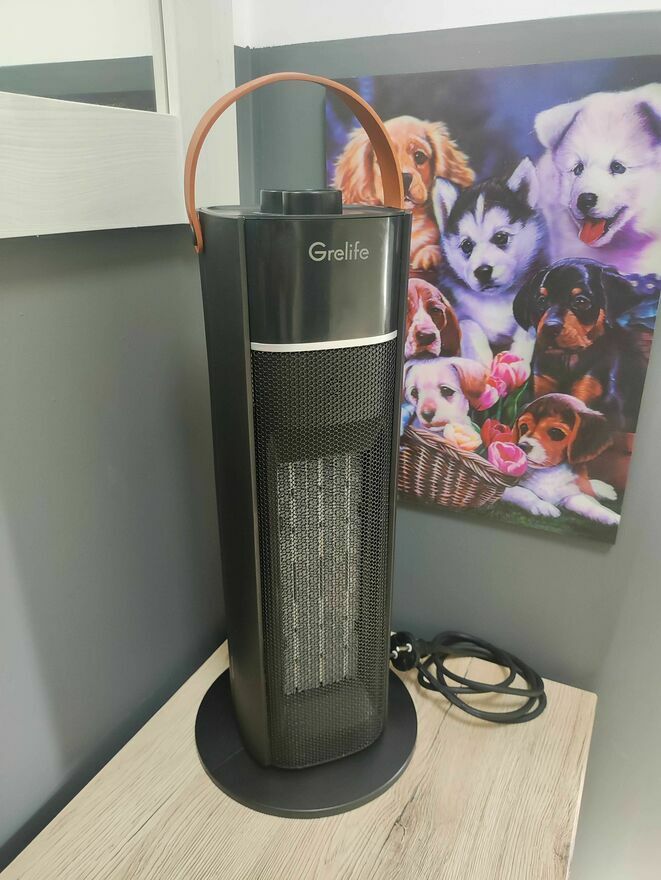 Przenośny termowentylator kolumnowy Ceramiczny Grelife. Doskonały do dogrzewania pomieszczeń. Wyposażony w wygodny uchwyt. Idealny do szybkiego ogrzewania niewielkich przestrzeni.