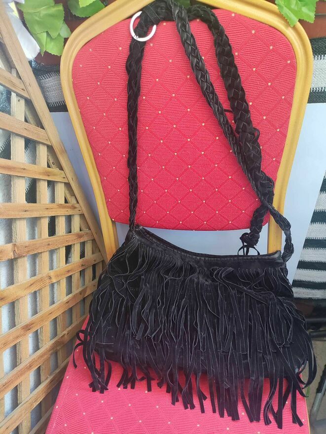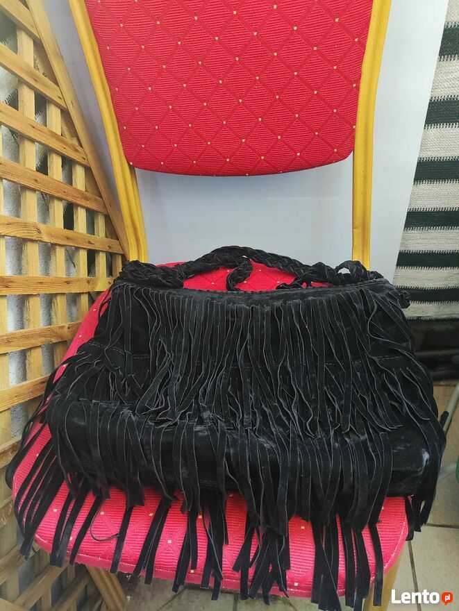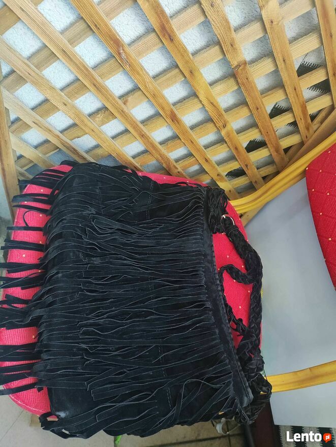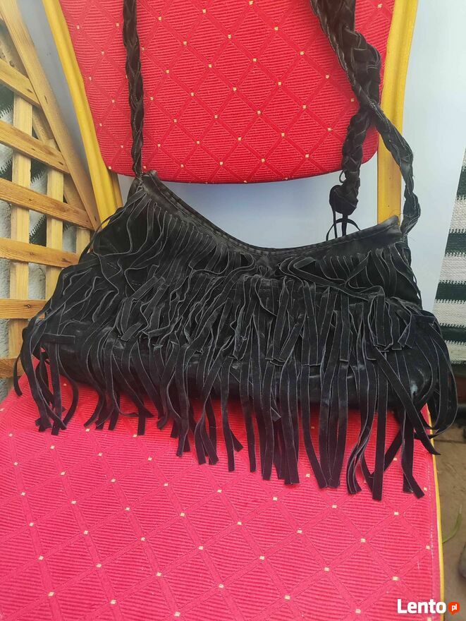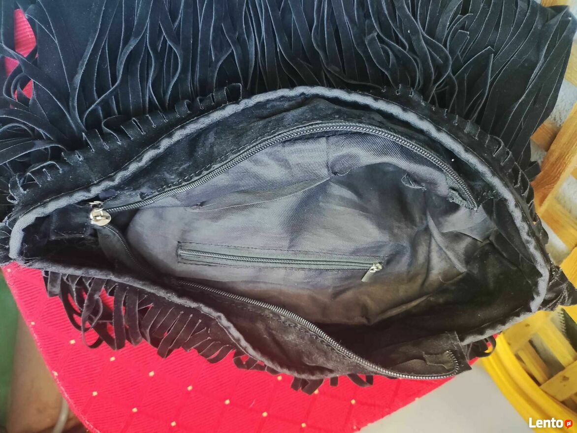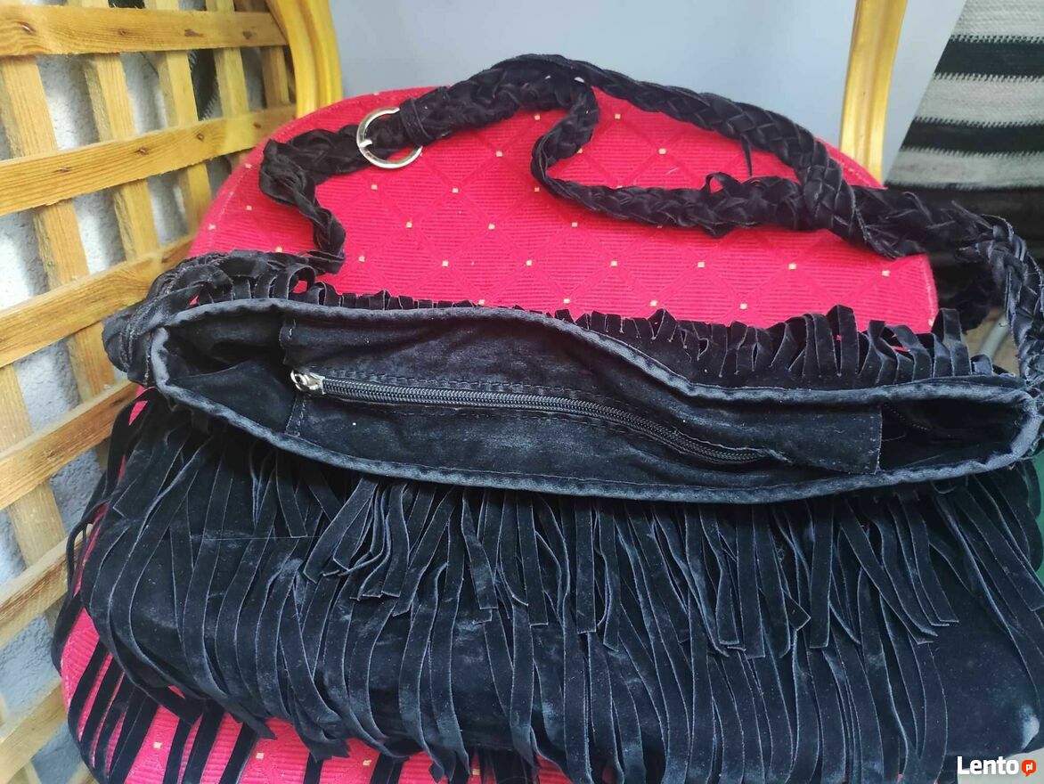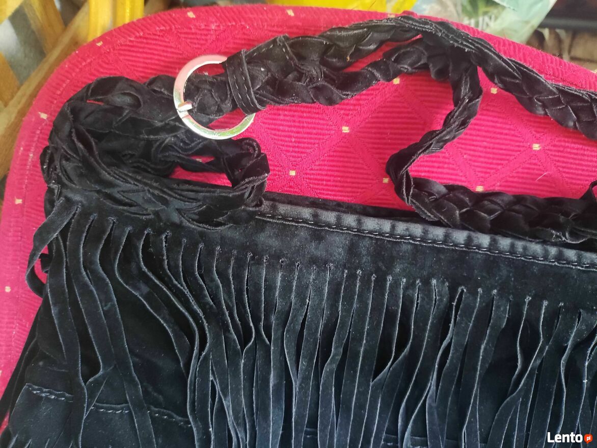 Torebka czarna na Ramię z frędzlami Torba zamszowa w stylu boho na zamek.Nowa.
