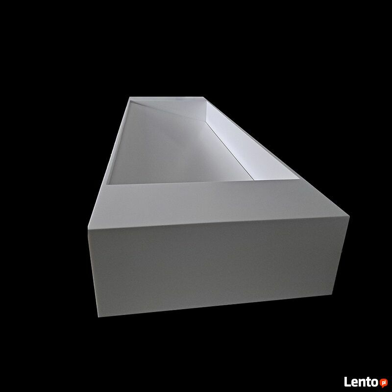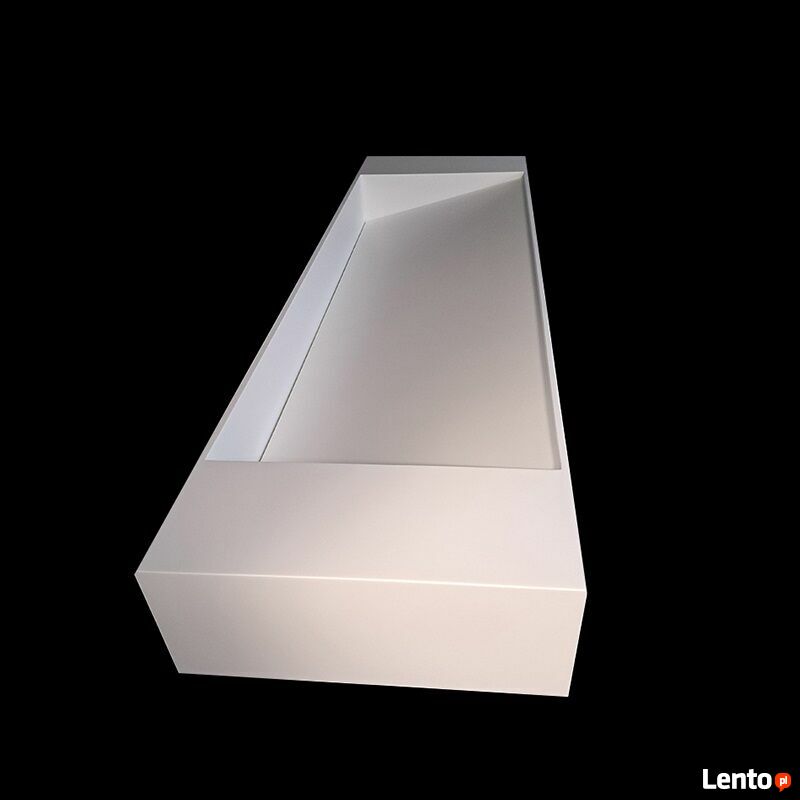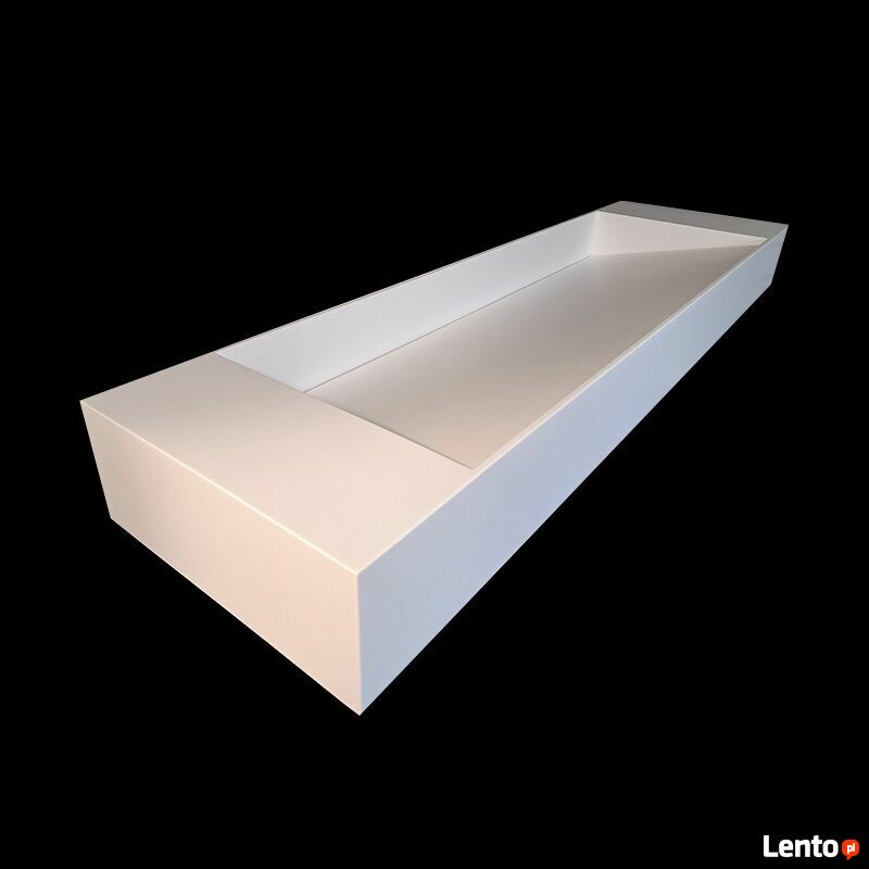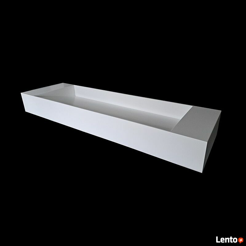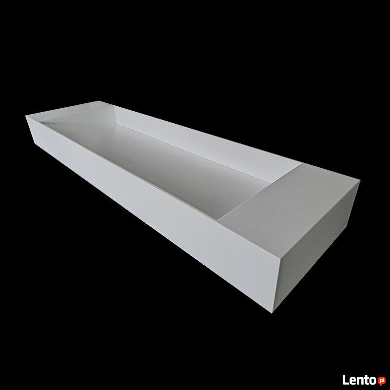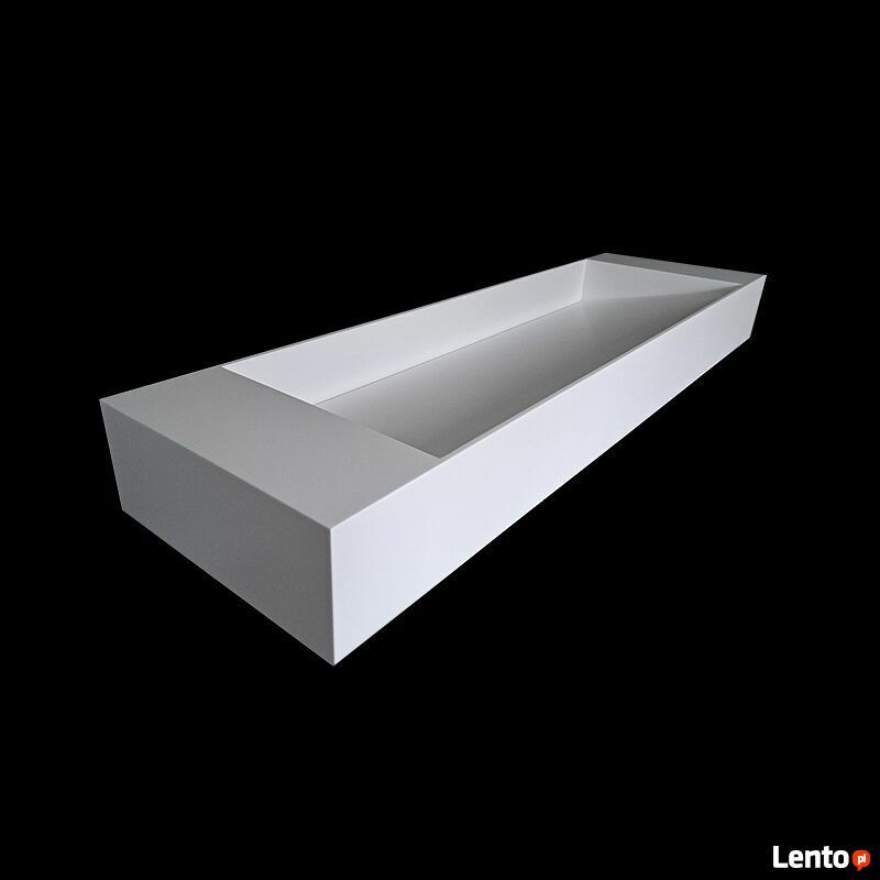 Produkt wykonywany na zamówienie - termin realizacji wynosi do 6 tygodni od daty złożenia zamówienia.Luiza - dwustanowiskowa umywalka wisząca (w tylnej ściance znajdują się otwory do zawieszania umywalki/otwory na wsporniki) - opcjonalnie umywalka może służyć także jako nablatowa. Po bokach umywalki znajduje się blat, z przodu i z tyłu misy znajdują się ścianki 1.2cm.