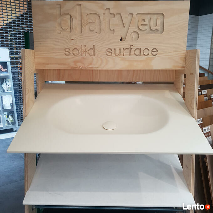 Jedna sztuka dostępna od ręki.Eliza - umywalka o wymiarach ~60x36x9cm wygięta bezpośrednio z blatu o wymiarach 80x60.5x1.2cm. Po bokach oraz z przodu umywalki znajduje się po 10cm blatu. Natomiast z tyłu 15cm. Istnieje możliwość wykonania otworu pod baterię z tyłu umywalki.
