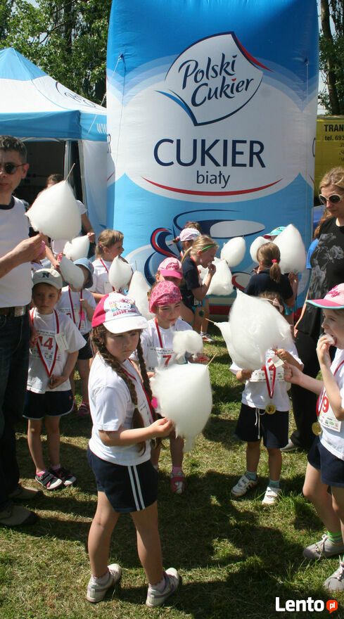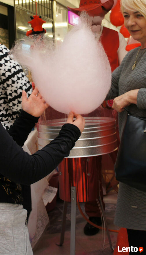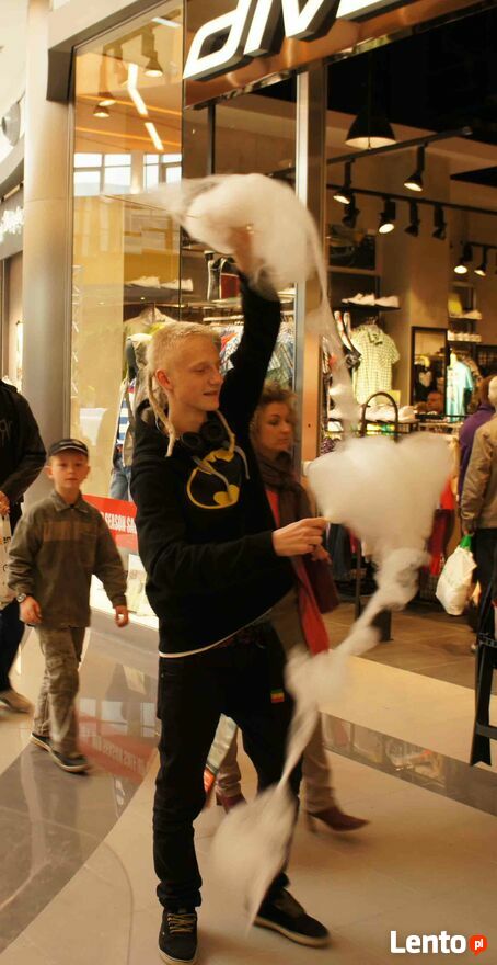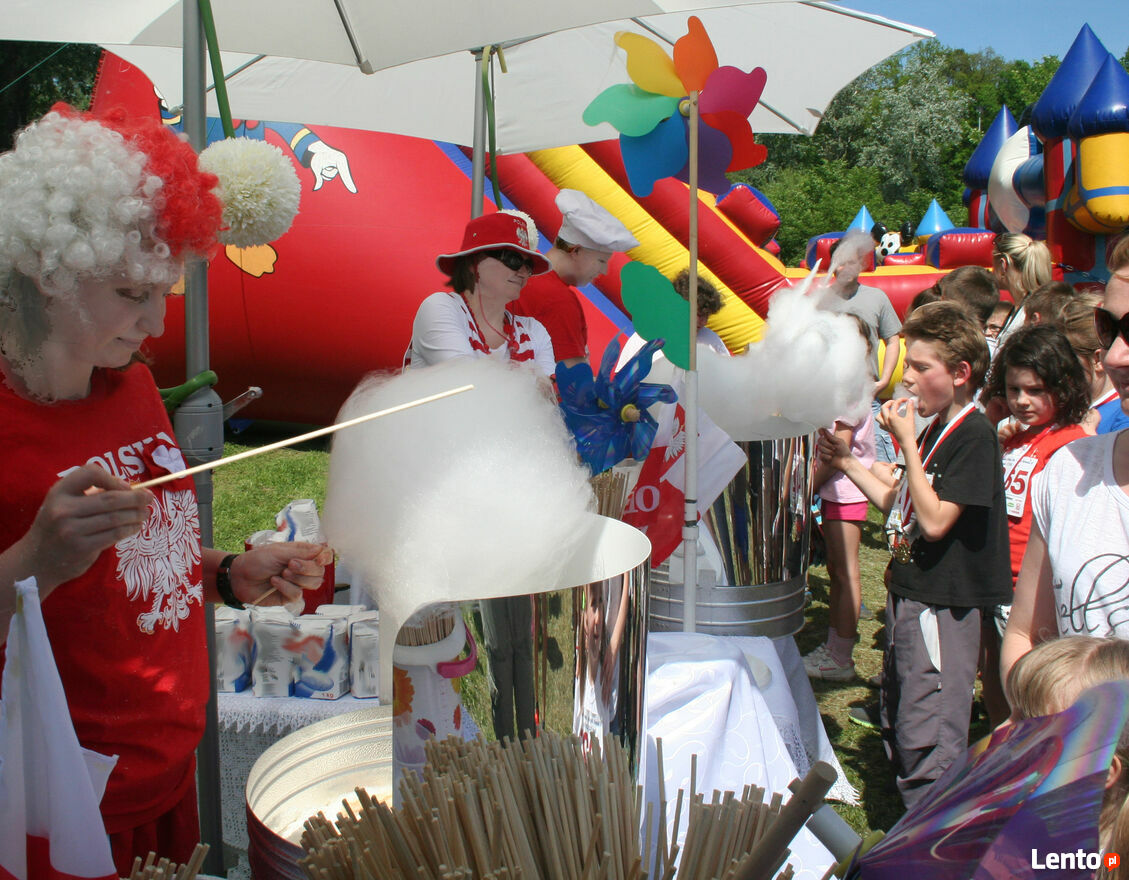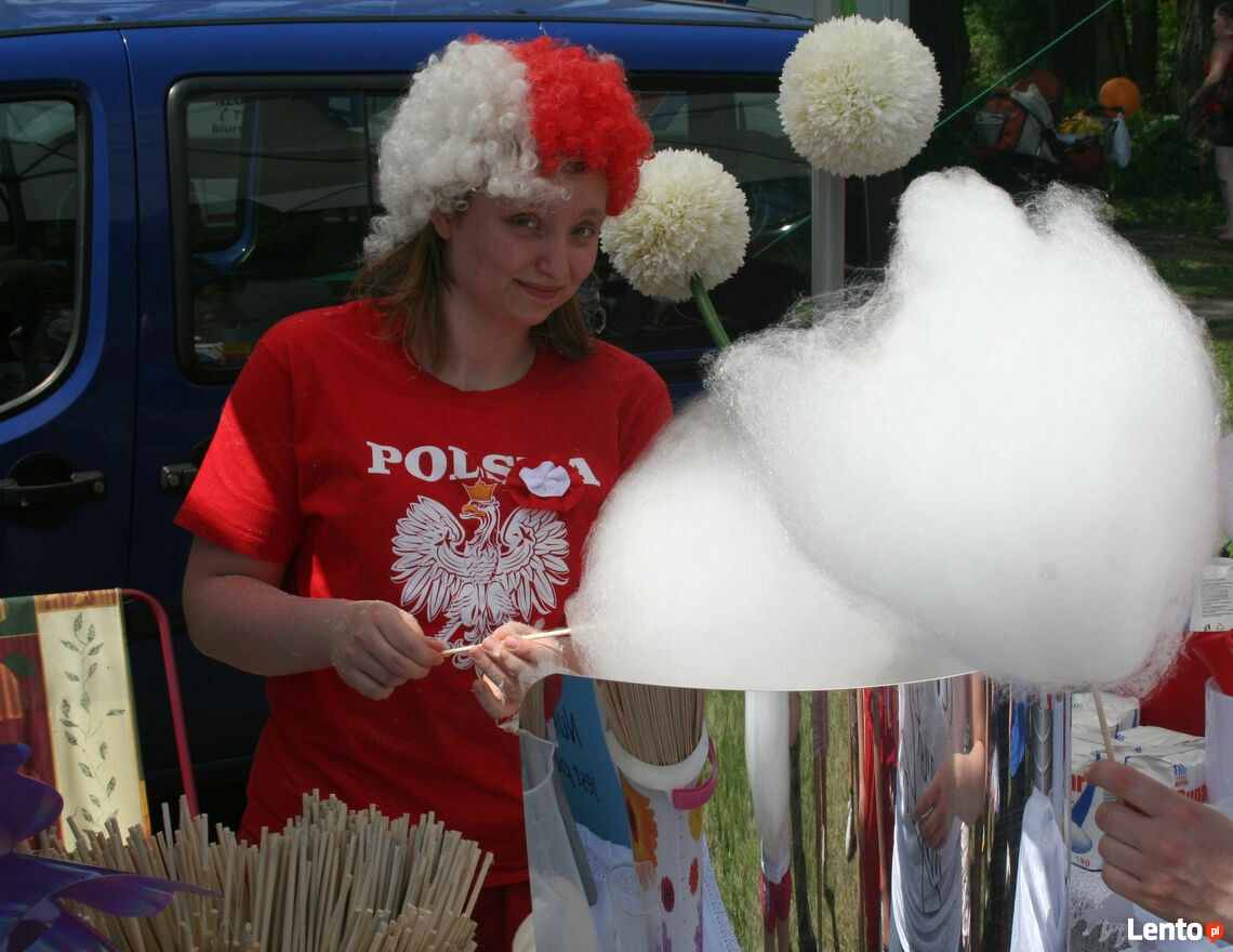 W tych dniach było komisyjne liczenie sztuk waty. Sponsor chciał wiedzieć czy rzeczywiście robimy 200-250 sztuk/godzinę i... !!! I okazało się, że robimy 300szt/godz. Tak. Co 10 minut wyskakiwało 50 porcji waty cukrowej. To rekord świata na takiej plenerowej maszynce do waty ukręcić w 10 minut 50 wat na patyku normalnej, przeciętnej wielkości.