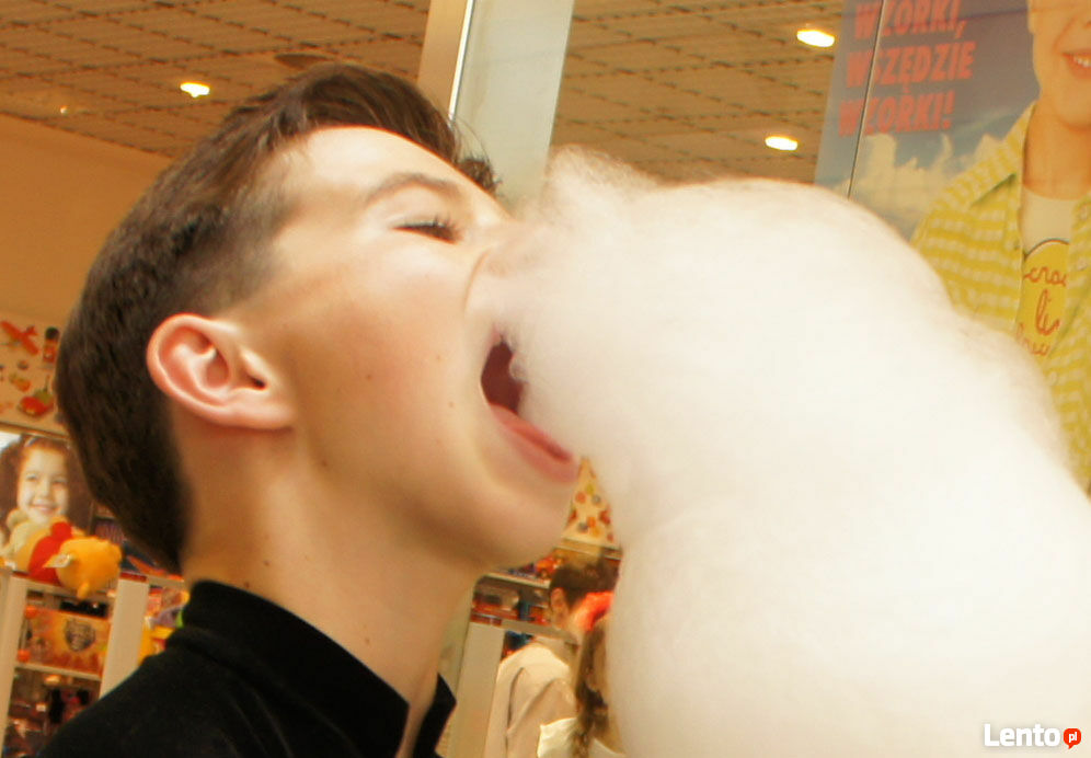 Można zobaczyć próbkę naszych gigantycznych wat cukrowych, które migiem są nawinięte na patyki.W tym miejscu, w którym są nakręcone filmiki, kręciliśmy watę cukrową od godz 10:00 do godz 21:00 codziennie przez 4 dni z rzędu.