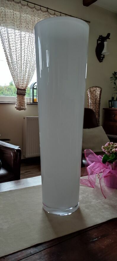 Przepiękny wazon w białym kolorze to świetna aranżacja wystroju eleganckich wnętrz mieszkania czy biura.Technika podwójnego szkła. Wazon z białego i przezroczystego szkła. Wazon nie jest malowany. To rzadka technika a ceny takich wazonów są naprawdę wysokie.
