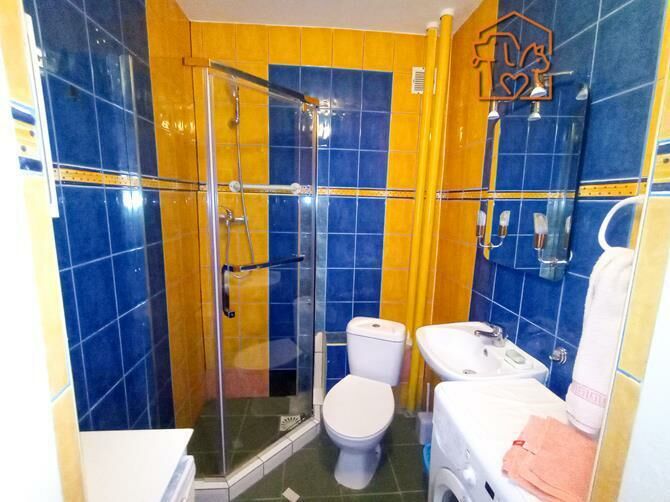 Łazienka: natrysk, WC, umywalka, pralka.