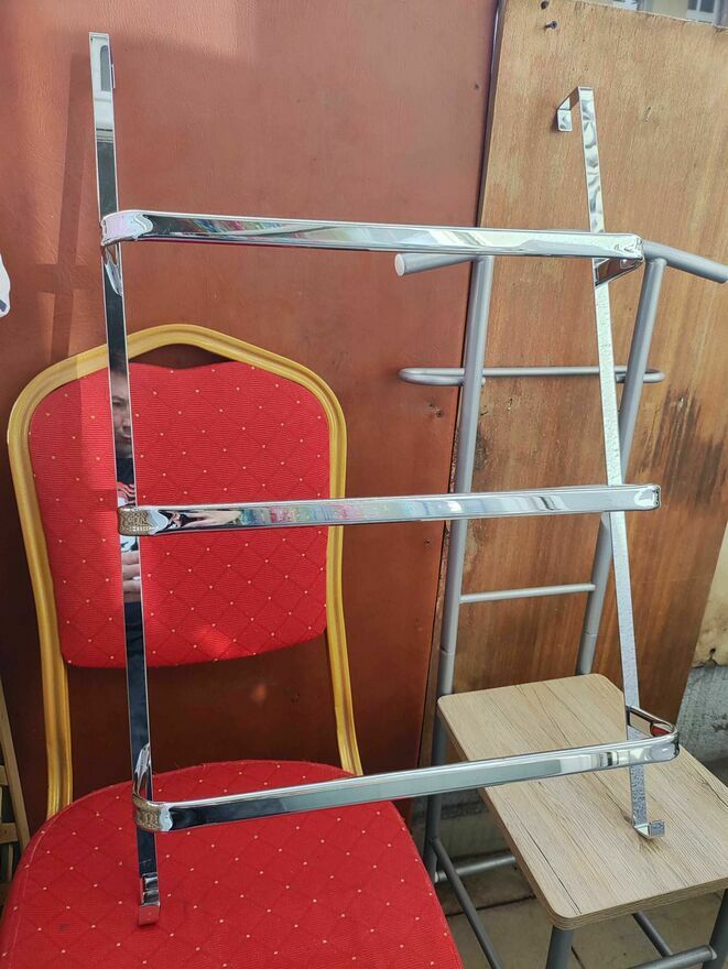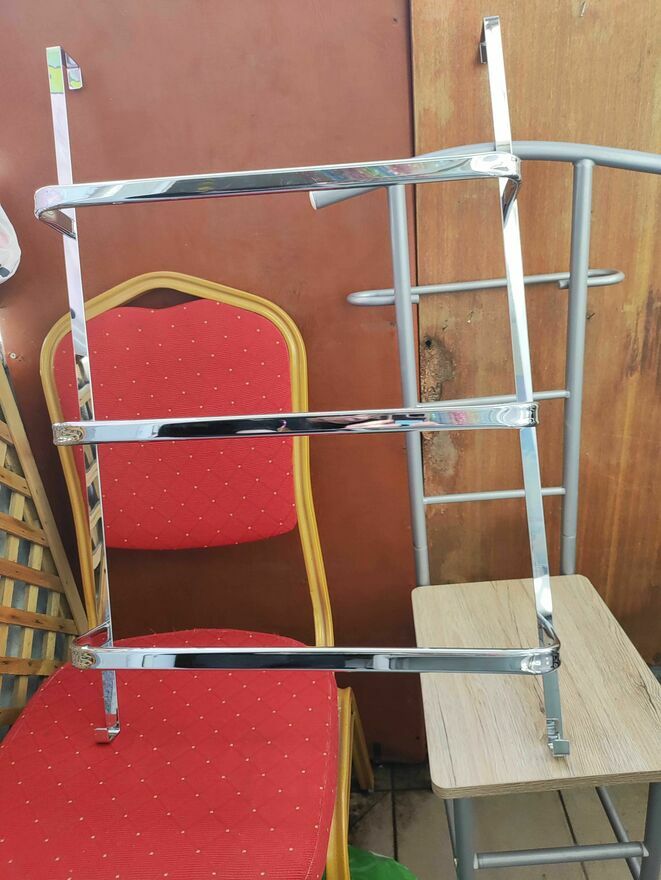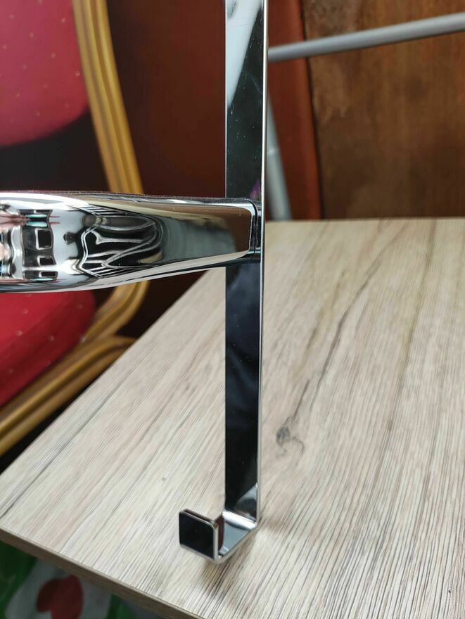 Wykonany w całości z chromowanego metalu o wyglądzie stali nierdzewnej - Minimalistyczny design - Dzięki ponadczasowemu wyglądowi wieszak na ręczniki dyskretnie wtapia się w łazienkę i staje się idealnym pomocnikiem w organizowaniu rzeczy