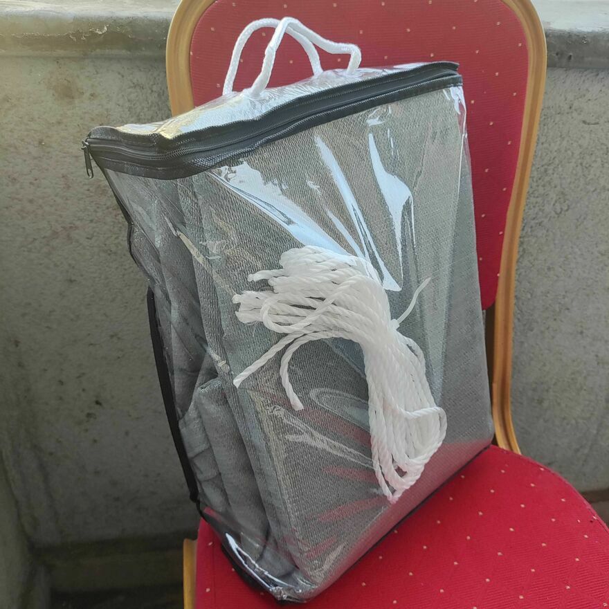 w zestawie z praktyczną torbą transportową na kemping i wakacje.