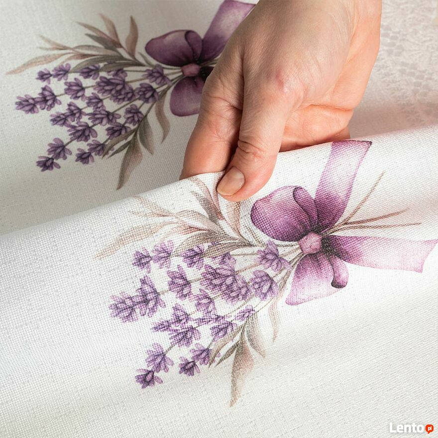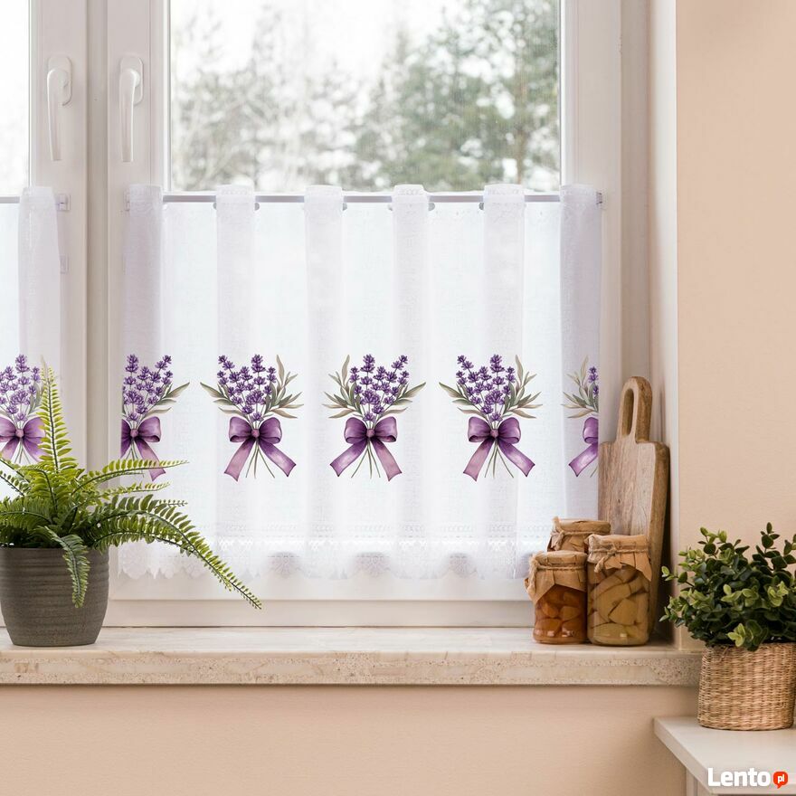 Zazdrostki wzór Lawenda, krótkie firany do kuchni, firana